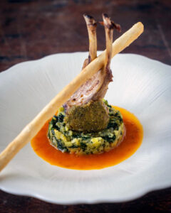 In elk ander geval zou lamskotelet bij Merlot niet de meest gelukkige combinatie zijn. Het malse vlees met zijn frisse en licht pittige smaken, past echter perfect bij de complexiteit van Terre di Lava. Vind maar eens een gerecht dat zich kan meten aan de zuren, structuur, kruidigheid en rokerige en aardse tonen. Nou, dat is dus precies wat Myriam van Hap en Tap heeft gedaan. Haar feestelijke lamskotelet barst van de smaakvolle kruiden en specerijen, op een podium gezet door de fijne structuur van aardappel en spinazie, in een fris bad van tomatensaus.