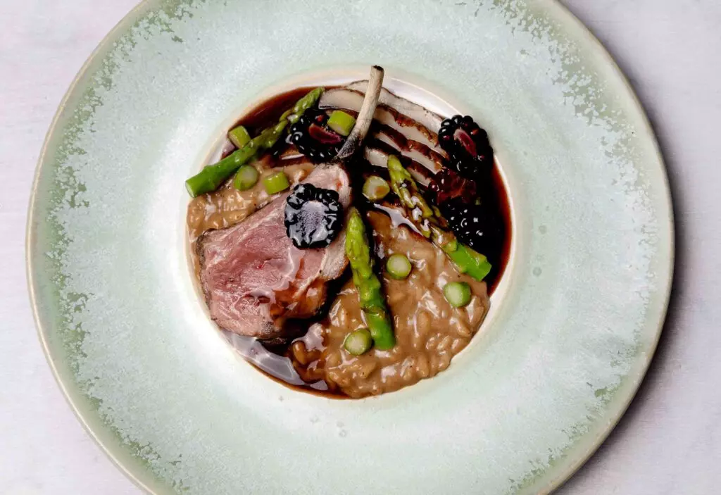 LAMSRACK MET EEKHOORNTJESBROODRISOTTO EN GROENE ASPERGES UIT DE KEUKEN VAN GASTRONOMIXS.NL