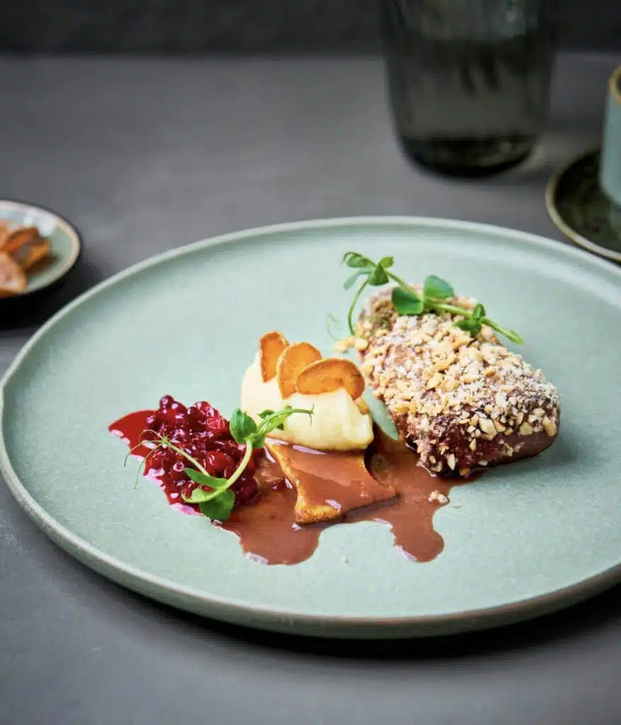 HERTENFILET MET PASTINAAKPUREE EN VEENBESSENCOMPOTE UIT DE KEUKEN VAN HAPENTAP.BE