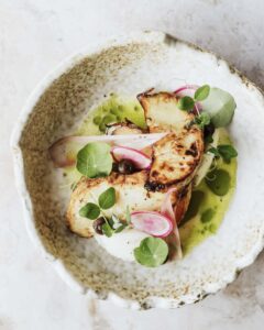 GEPOFTE KNOLSELDERIJ MET MISO, ZWARTE KNOFLOOK, PASTINAAKPURREE EN BEURRE BLANC VAN CIELSTABLETALES