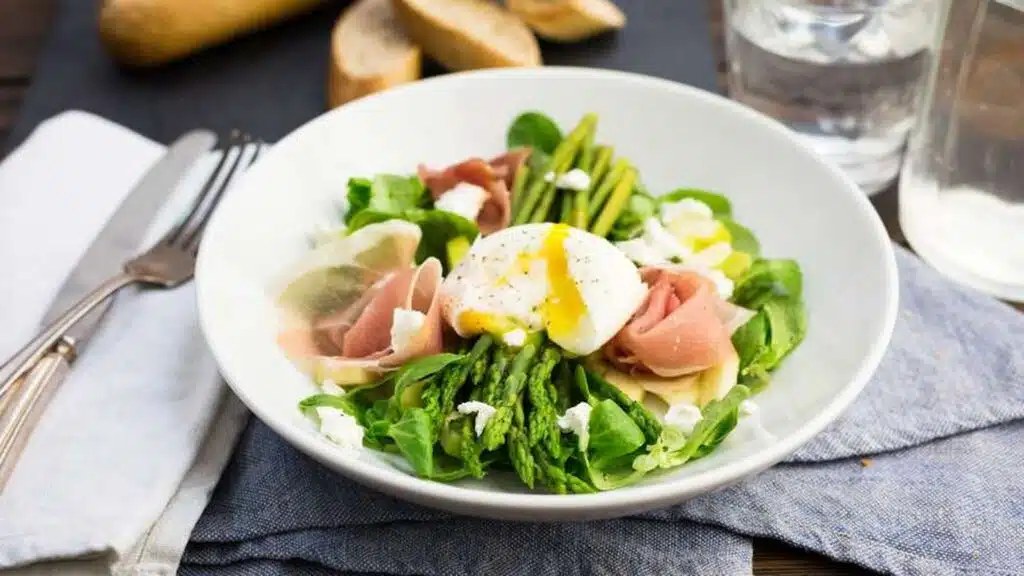 MAALTIJDSALADE MET GROENE ASPERGES EN RAUWE HAM UIT DE KEUKEN VAN CULY